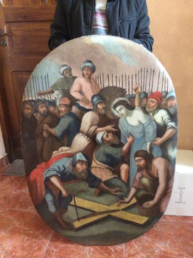9 marca po pracach konserwatorskich, powróciła do parafii X stacja Drogi Krzyżowej. Po usunięciu kitowań, woskowań, wykonaniu zdjęć w podczerwieni i ultrafiolecie udało się konserwatorom odtworzyć i przywrócić pierwotny wygląd obrazu. Autor obrazu, który jest nieznany, w bardzo ciekawy sposób przedstawił scenę „Odarcia z szat”. Postać Jezusa, kolorystyka Jego skóry, jest odmienna od pozostałych (barwa zapewne miała symbolizować światło i nieskalanie grzechem). Dodatkowo jeden z „bohaterów” tej sceny, narzędziem stolarskim wierci dziurę w krzyżu (co jest rzadko spotykane w obrazach przedstawiających stację Drogi Krzyżowej).