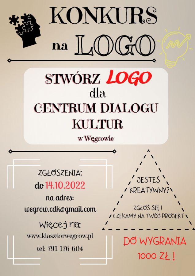 Parafia ogłasza konkurs na opracowanie graficzne logotypu Centrum Dialogu Kultur. Nagroda w konkursie wynosi 1 000,00 zł brutto. Celem konkursu jest wyłonienie projektu logo, który będzie stanowił identyfikację wizualną Centrum DIalogu Kultur. Termin nadsyłania prac do 14 października 2022 roku. Więcej informacji w załącznikach: