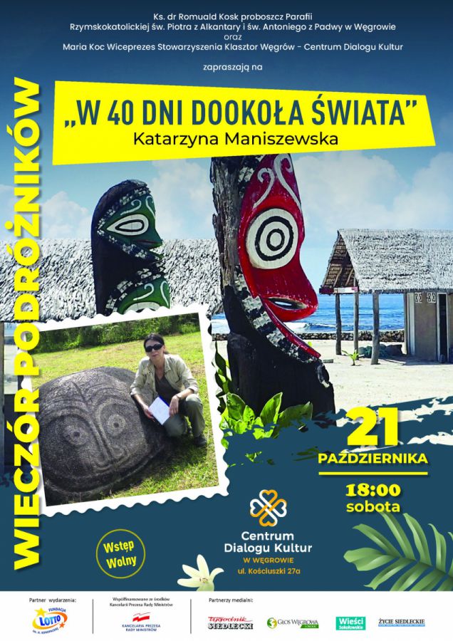W sobotę 21 października zapraszamy na kolejny Wieczór Podróżników. Gościem spotkania będzie Katarzyna Maniszewska, a tematem prezentacji zatytułowanej "W 40 dni dookoła świata" będzie jej tytułowa podróż wokół globu, z Polski przez Paragwaj, Brazylię, Argentynę, Nową Zelandię, Vanuatu, Australię, Zambię, Botswanę, Zimbabwe i RPA. „Taka podróż jest lepsza niż studia na najdroższej uczelni. Ile można dowiedzieć się o świecie, geografii, ludziach i zwyczajach jest bezcenne” - mówi Katarzyna Maniszewska, która opowie m.in. o próbach utworzenia utopii w Paragwaju, o tym dlaczego Buenos Aires przypominało jej warszawską Pragę, o osobliwych kulinariach w Vanuatu i tajemniczych ruinach „Wielkiego Zimbabwe”.